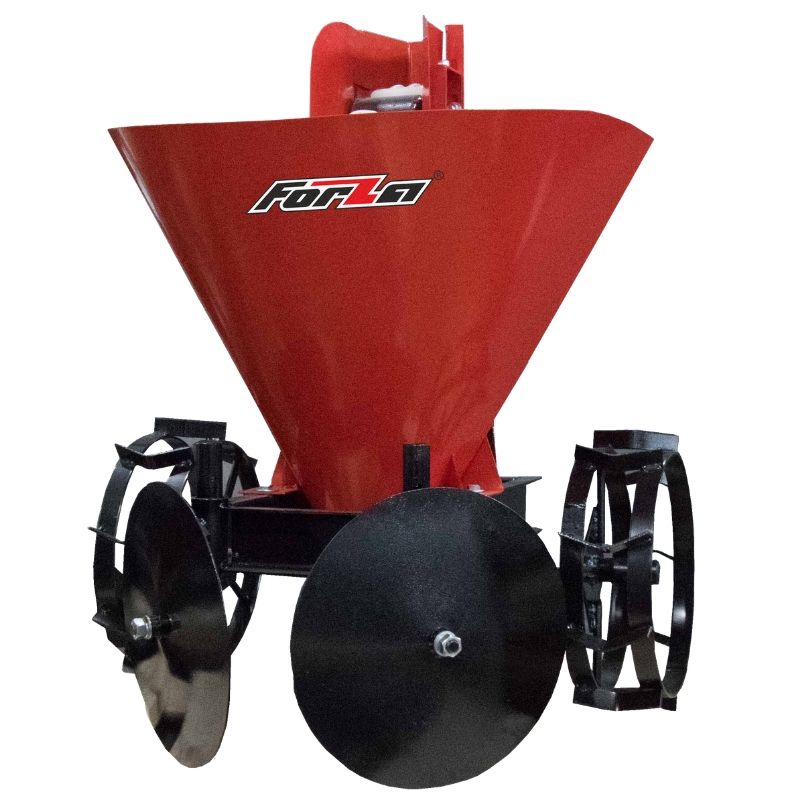 Картофелесажалка предназначена для посадки семенного картофеля с одновременной заделкой в почву и образованием почвенного гребня. Агрегатируется с мотоблоками среднего и тяжелого типа. Картофелесажалка имеет бункер с транспортировочной лентой, в который засыпается посадочный материал. По транспортировочной ленте картофель попадает в борозду, нарезаемую окучником, установленным под бункером. Сзади навески установлен дисковый окучник, который засыпает борозду с картофелем. Тип окучника - дисковый. Грунтозацепы в комплекте.