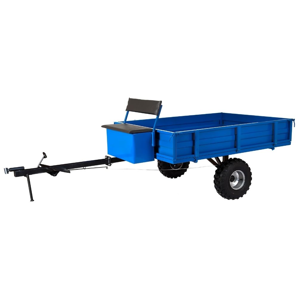 ТПМ3-343 Телега для мотоблока с большим кузовом с тремя откидными бортами. Телега с широким сиденьем, грузоподъемностью 650 кг., разъемное Т-образное дышло, тормоз, колесо 19-7*8