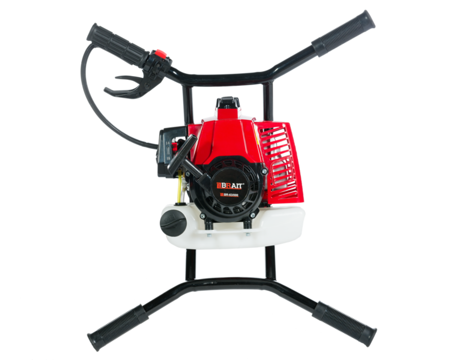 Мотобур BRAIT BR-63/000 используется для бурения различных, в том числе и крупных отверстий в почве. Оборудован 2-х тактным двигателем мощностью. Полупрозрачный бак позволяет отслеживать расход топливной смеси. Оснащен рукоятками для двух операторов, одна из рукояток оснащена органами управления. Скорость вращения шнека может достигать 277 оборотов в минуту. Вес бура 9,5 кг. Есть возможность присоединения шнеков различных диаметров для работы с почвой или льдом.