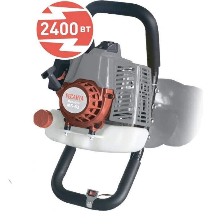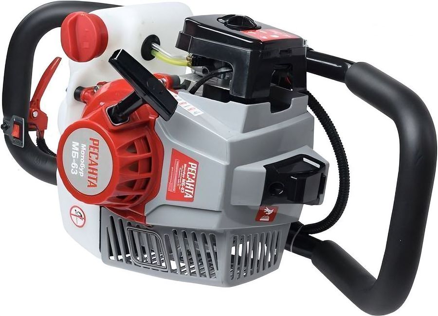 Мотобур Ресанта МБ-63 оснащен одноцилиндровым 2-тактным двигателем с системой воздушного охлаждения мощностью 2,4 кВт и объемом 63 см³.