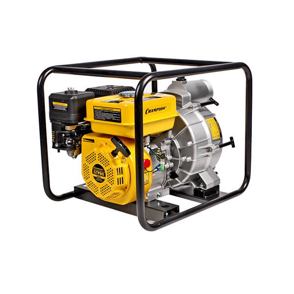Мотопомпа Champion GTP80 имеет отличные напорные особенности. С помощью такого агрегата можно не только быстро орошать посевы, но и осушать резервуары. Загрязненная жидкость проходит очистку. Для этих целей предусмотрен специальный фильтр. Насос без труда очищается от скопившейся грязи благодаря особой камере. Она находится в легком доступе. На раме агрегата закреплен грязевой бензиновый насос. Он значительно облегчает процесс транспортировки. Также данная модель отличается устойчивостью. Ее можно эксплуатировать на любой поверхности.
