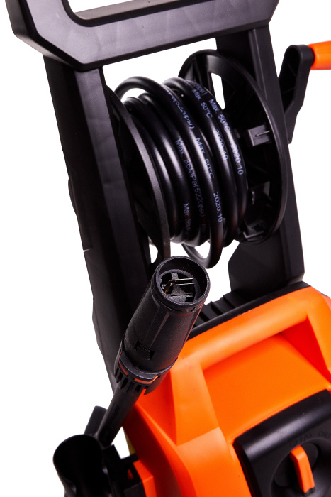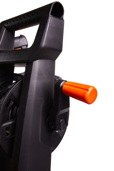 Увеличенный до 7м эластичный шланг высокого давления на барабане позволяет свободно мыть автомобиль, чистить крыши дачных построек и другие объекты не передвигая мойку. Благодаря своей эластичности шланг легко разматывается и сматывается на барабан.