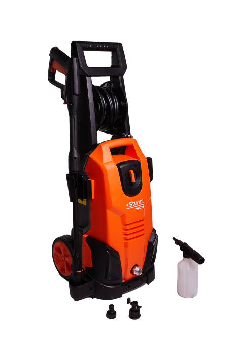 Мойка высокого давления Sturm! PW9223 c функцией самовсасывания и встроенным фильтром для использования любого источника воды, в том числе без источника давления (водопровод, емкости с водой, водоемы), мощностью 2300Вт, оснащена трех-плунжерным алюминиевым насосом высокой производительности, что позволяет мойке выдавать высокую производительность 450 л/час и высокое давление до 165 бар необходимое для удаления стойких загрязнений.