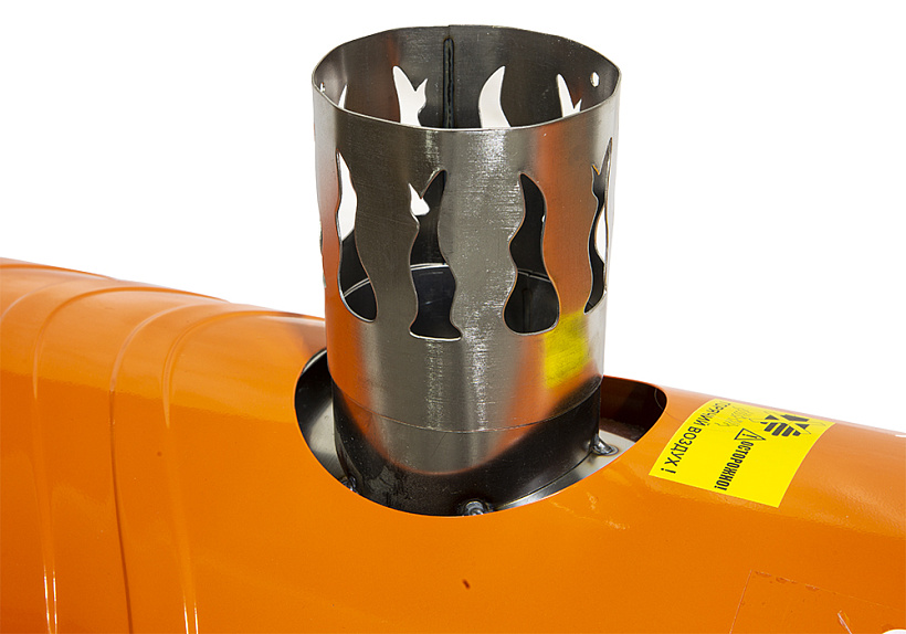 Модель оснащена теплообменником из высококачественной нержавеющей стали марки, разделяющим зоны горения топлива и нагрева воздуха. Благодаря данному трехходовому теплообменнику, КПД работы теплогенератора достигает уровня до 85%. Тепловая мощность - 20 кВт тепла, а производительность 560 м3/ч. Уникальная конструкция позволяет отводить продукты сгорания за пределы обогреваемого помещения. Для максимальной безопасности пушка оснащена системой защиты от перегрева, контролем стабилизации пламени.