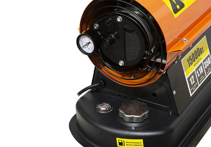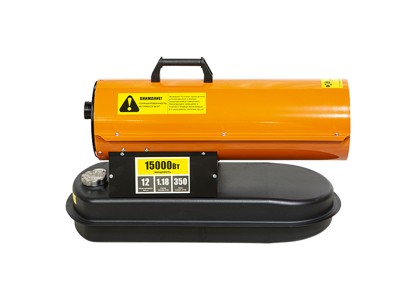 Дизельная тепловая пушка Sturm! DKH15 , имеет тепловую мощность 15кВт предназначены обогрева производственных помещений, складов и ангаров, строительных площадок и павильонов. Также ее используют на строительных площадках для просушивания стен, разморозки траншей, подогрева бетона. Во время арктических экспедиций дизельные тепловые пушки также часто выступают генератором тепла. Тепловая пушка отличается высокой производительностью 350 м3/ч при экономичном расходе топлива 1,18 л/ч. Полного бака 12 л хватает до 10 часов работы без дозаправки.