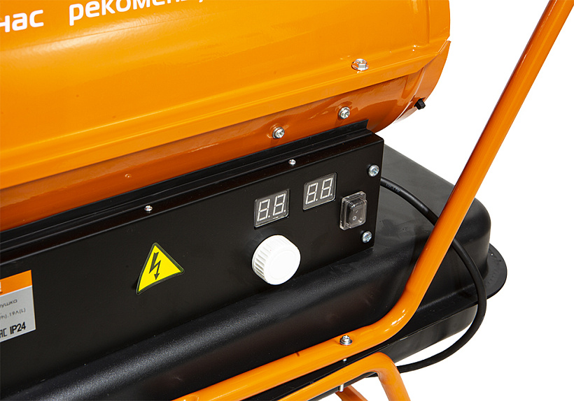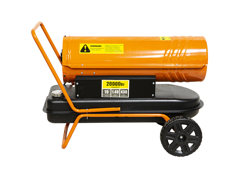 Мощный обогреватель с объемом бака 19 литров. Форма корпуса моделирует направленный горячий поток воздуха при обогреве нежилых помещений и открытых рабочих пространств даже в самых суровых климатических условиях.Уровень КПД прибора близок к 100%, а тепловая мощность достигает 20 кВт. тепловая пушка оснащена встроенным термостатом повышенной чувствительности для работы в автономном режиме с поддержанием заданной температуры и цифровым дисплеем - указателем температуры. Теплоотражающий стальной экран поддерживает равномерный нагрев. Максимальная безопасность и контроль обеспечивается с помощью электронной платы управления, температурного датчика.
