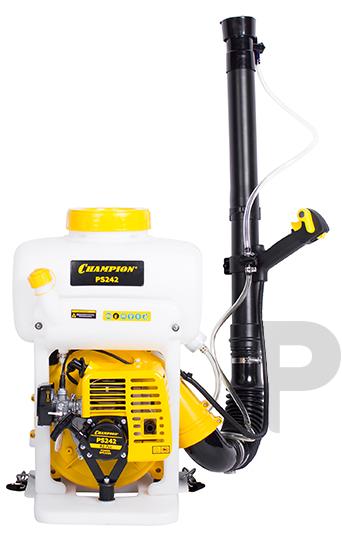 Опрыскиватель Champion PS242 - используется для распыления на растения средств от паразитов, распределения удобрений и подкормки и других работ, связанных с распылением жидких химикатов и удобрений. Садовый опрыскиватель Champion PS242 оснащен надежным 2-тактным бензиновым двигателем мощностью 1.7 л.с. Двигатель заправляется топливной смесью, которая состоит из бензина марки не ниже АИ-92 и масла для 2-тактных двигателей в соотношении 50:1. Топливный бак емкостью 1.8 л выполнен из прозрачного материала, поэтому контролировать уровень топлива очень легко.