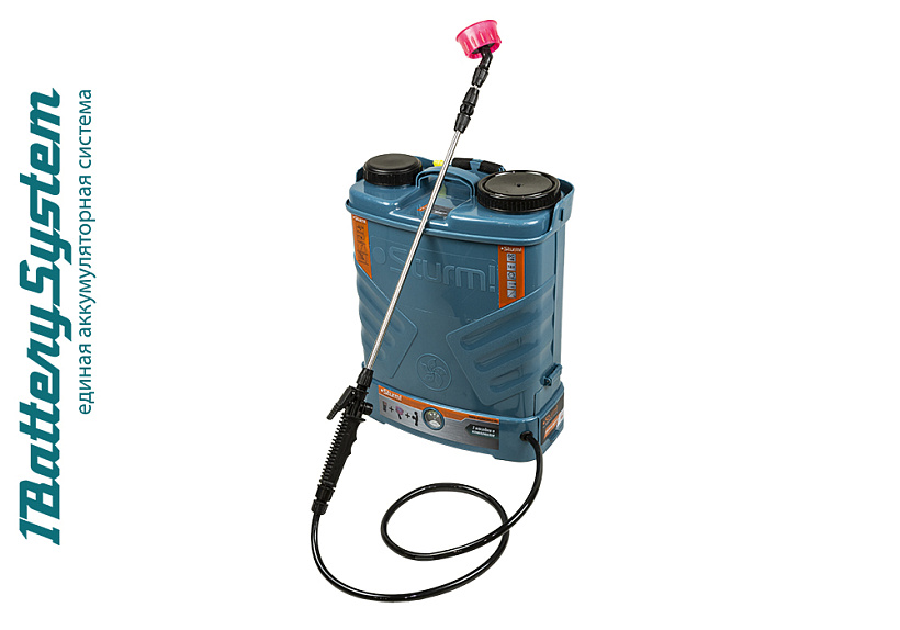 Опрыскиватель является частью системы 1BatterySystem. 1BatterySystem - универсальная аккумуляторная система. Подходит ко всей линейке аккумуляторного инструмента Sturm!