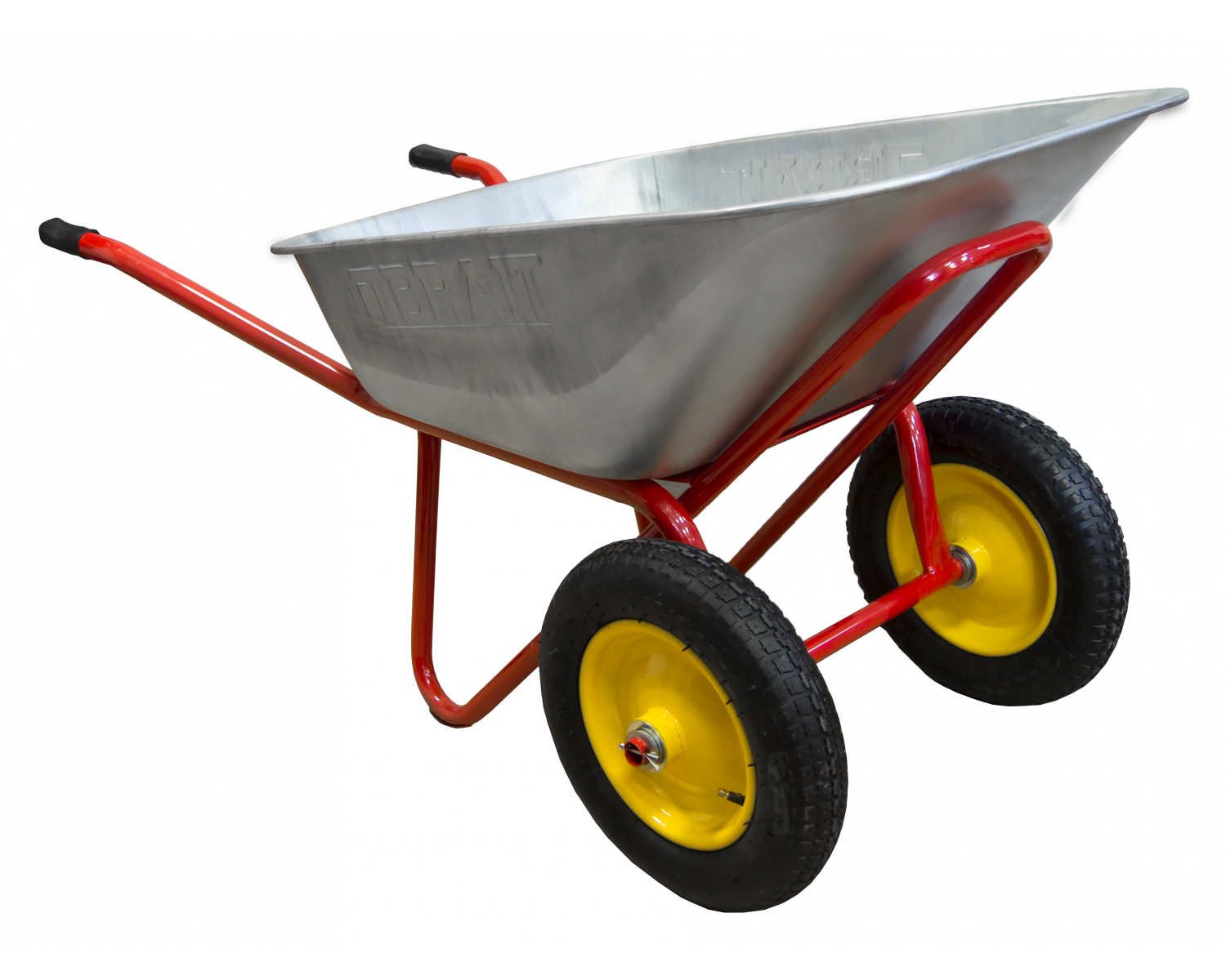 Тачка строительная двухколесная BRAIT 240 (пневмо) с оцинкованным корытом емкостью 110 литров и грузоподъемностью до 240 кг кг. Тачка предназначена для тяжелых работ на строительной площадке и в саду. На тачке можно перевозить различные грузы: строй материалы, дачный мусор, дрова для печи, мебель. За счет особой конструктивной формы тачка выдерживает большие нагрузки 240 кг