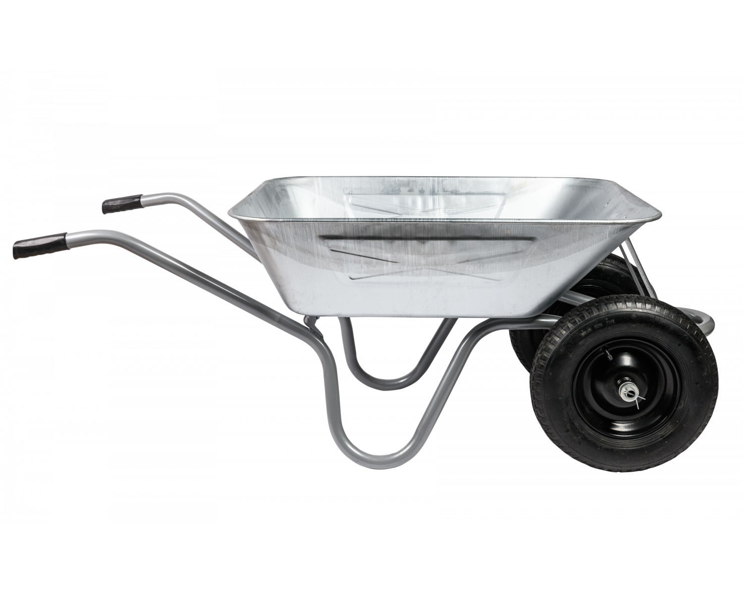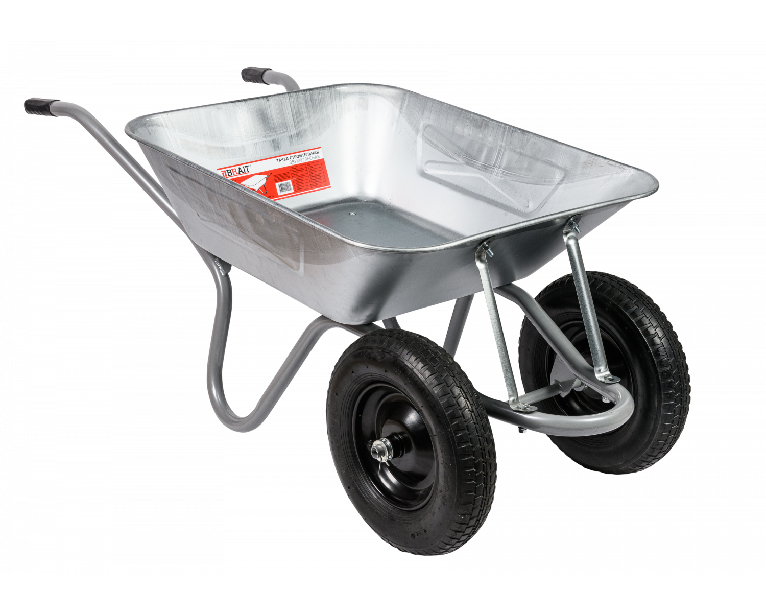Тачка строительная двухколесная BRAIT 280 (пневмо) с оцинкованным корытом емкостью 130 литров и грузоподъемностью до 280 кг кг. Тачка предназначена для тяжелых работ на строительной площадке и в саду. На тачке можно перевозить различные грузы: строй материалы, дачный мусор, дрова для печи, мебель. За счет особой конструктивной формы тачка выдерживает большие нагрузки 280 кг