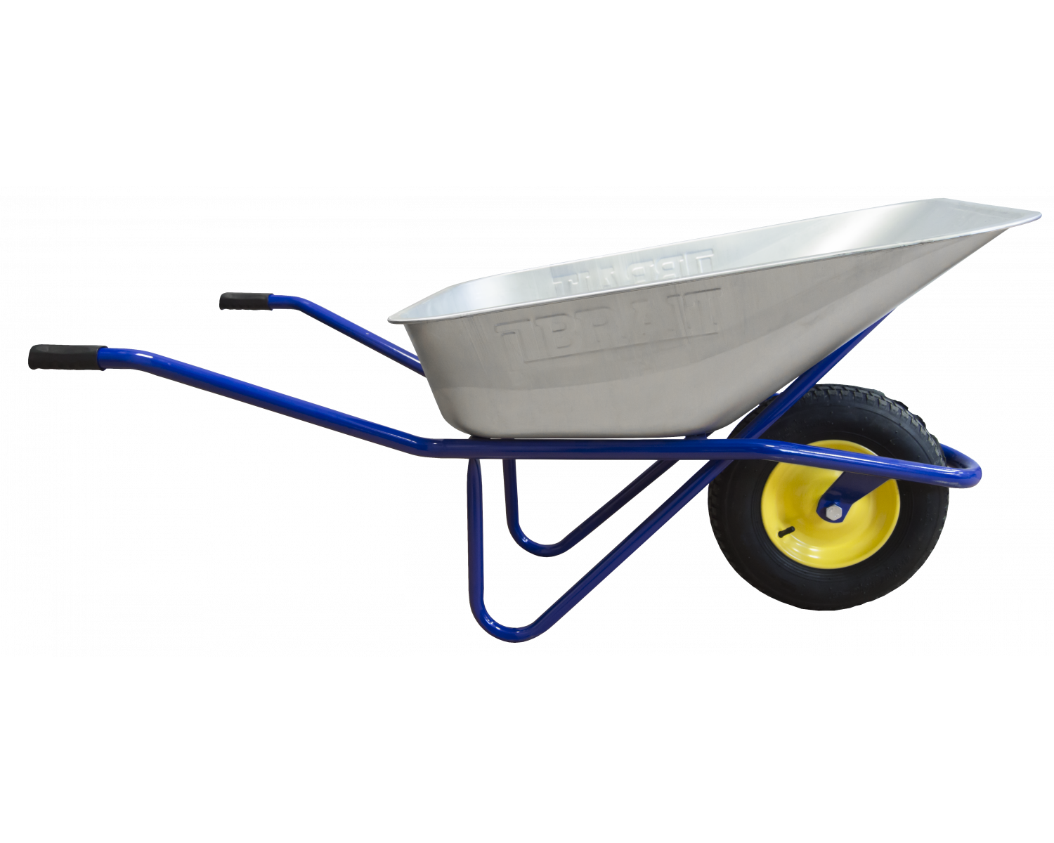 Тачка строительная одноколесная BRAIT 180 (пневмо) с оцинкованным корытом емкостью 100 литров и грузоподъемностью до 180 кг кг. Тачка предназначена для тяжелых работ на строительной площадке и в саду. На тачке можно перевозить различные грузы: строй материалы, дачный мусор, дрова для печи, мебель. За счет особой конструктивной формы тачка выдерживает большие нагрузки 180кг.