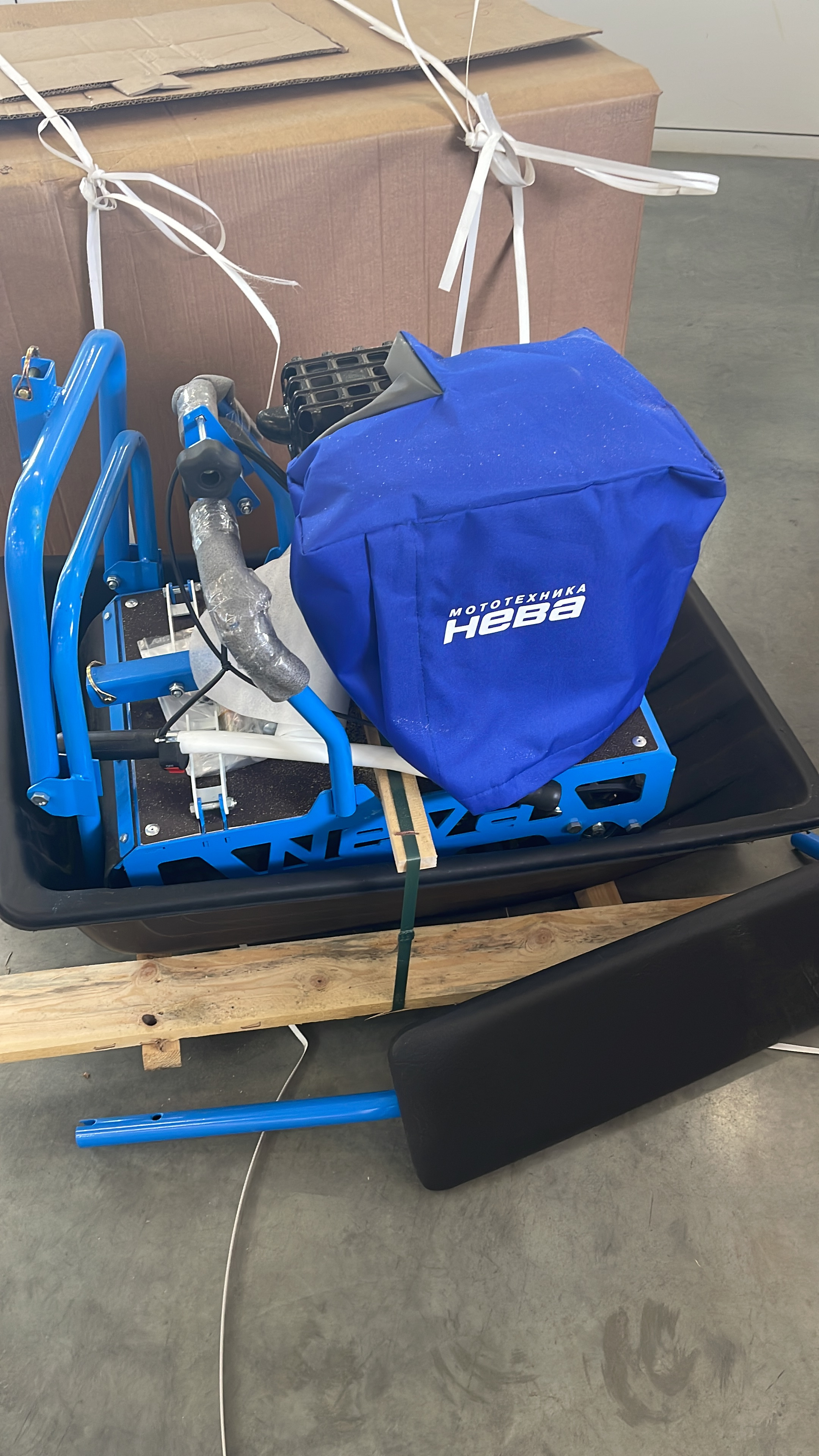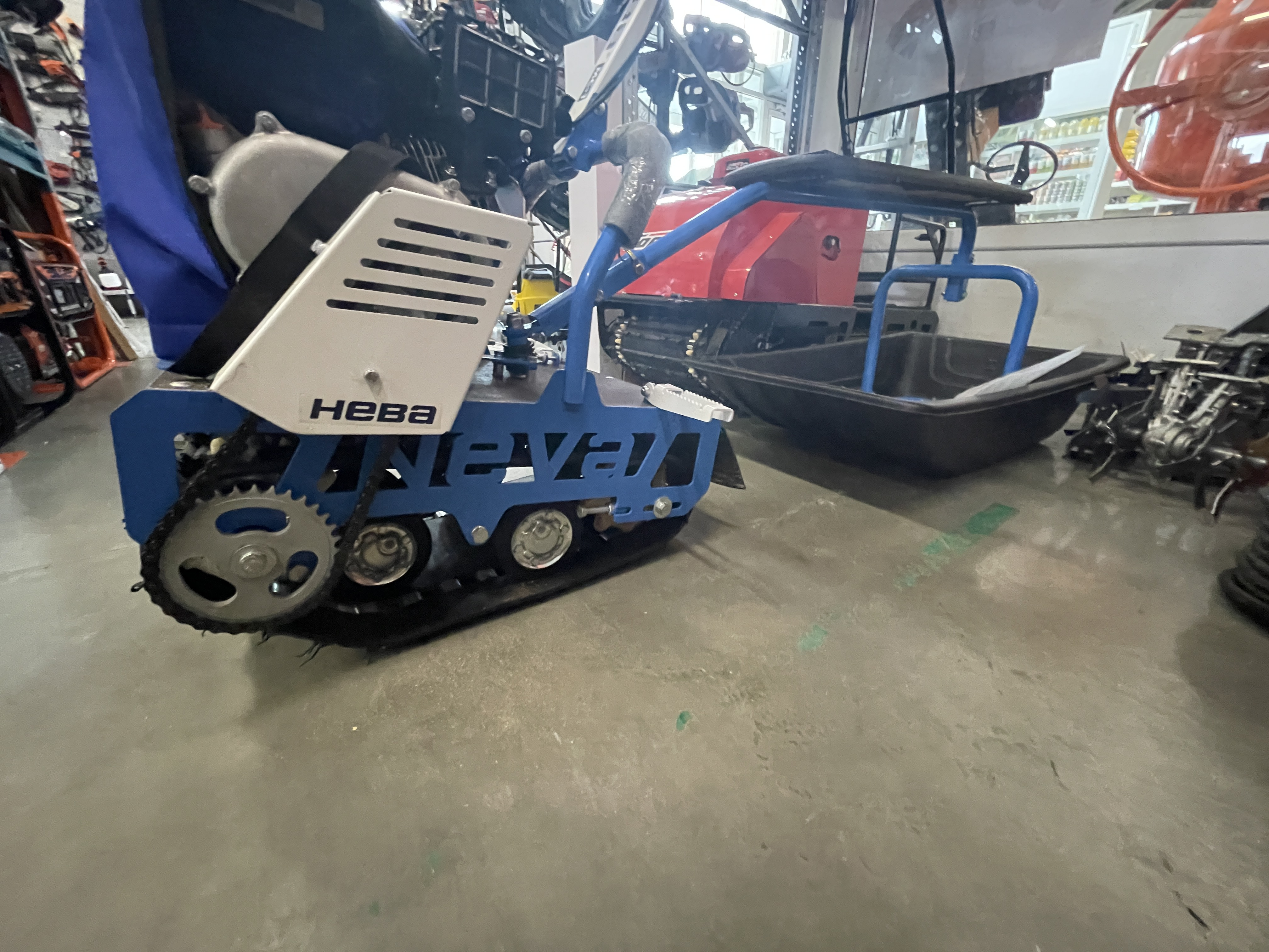 Мотобуксировщик «НЕВА» МС1-ZS (GB225) продается в комплекте с санями. Сани изготовлены из прочного морозостойкого пластика, благодаря чему они уверено скользят по снежной и обледеневшей поверхности. Дополнительно на сани устанавливается удобное сиденье, позволяющее пользователю с комфортом ездить на мотобукировщике