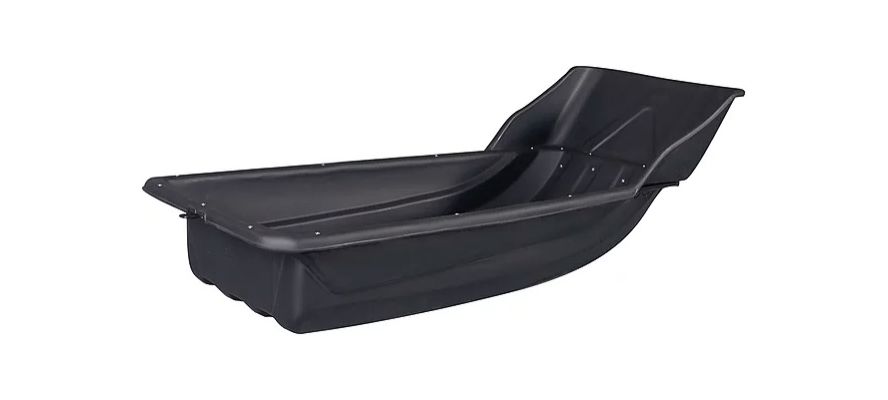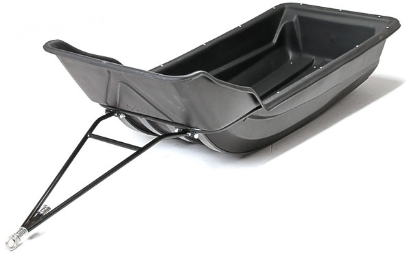 Размеры — 1900 × 850/750 × 520 мм: достаточно вместительные, чтобы увезти добычу и снаряжение, но не громоздкие, чтобы ловко маневрировать между деревьями. Корпус сделан из ударопрочного морозостойкого пластика, который не боится ни трескучего мороза (до -60\,^\circC), ни случайных ударов о кочки и пни.