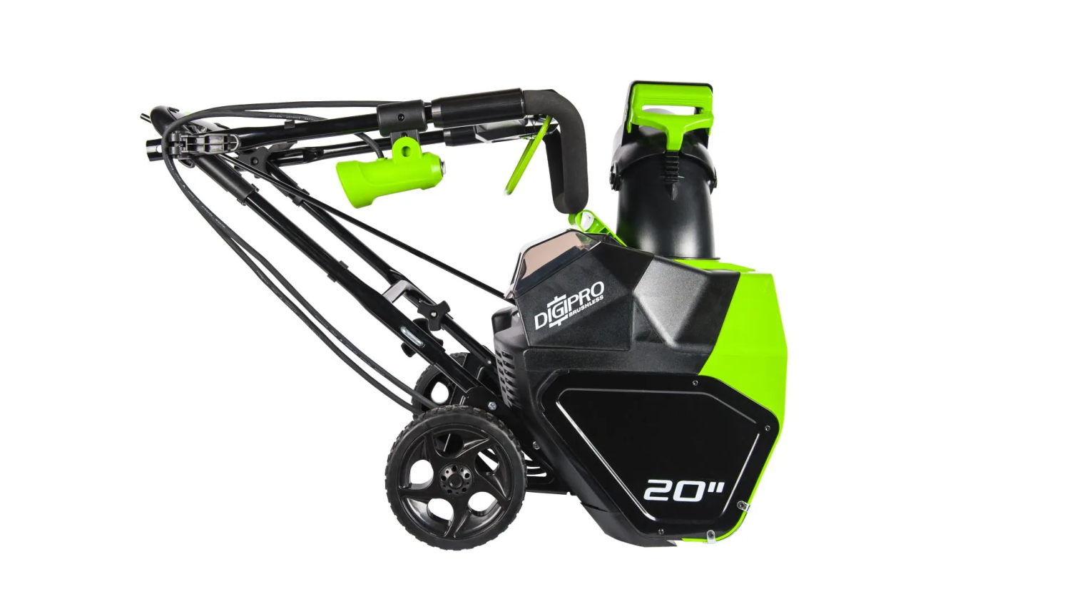 Снегоуборщик аккумуляторный Greenworks с обозначением.