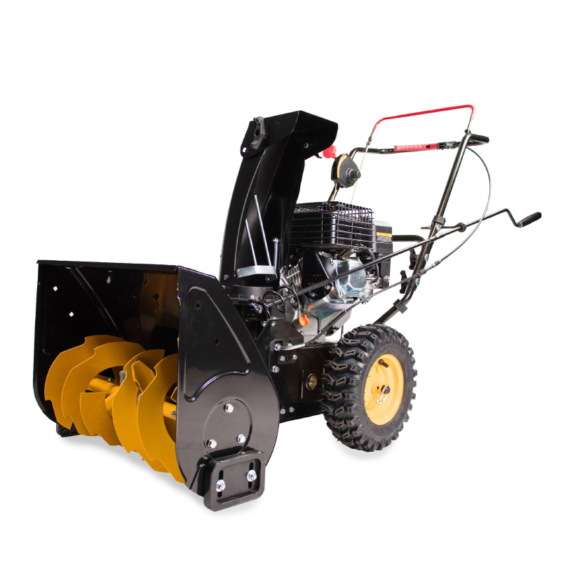 Поступательное движение снегоуборщика обеспечивают два бескамерных колеса 25 x 12 см, которые несут на себе всю рамную конструкцию снегоуборщика, при этом удачная компоновка позволяет без лишних усилий маневрировать 72-килограммовой машиной. Данная модель обладает всеми необходимыми регулировками, включая регулировку высоты забора снега и регулировку дальности выброса снега. Запуск двигателя осуществляется вручную посредством надёжного пускового устройства. В качестве топлива может использоваться бензин с октановым числом 92 или 95.