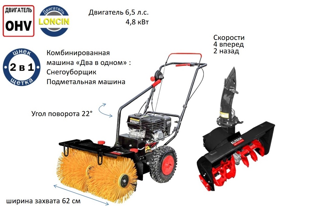 Бензиновая подметально снегоуборочная машина Elitech ST 0656U2