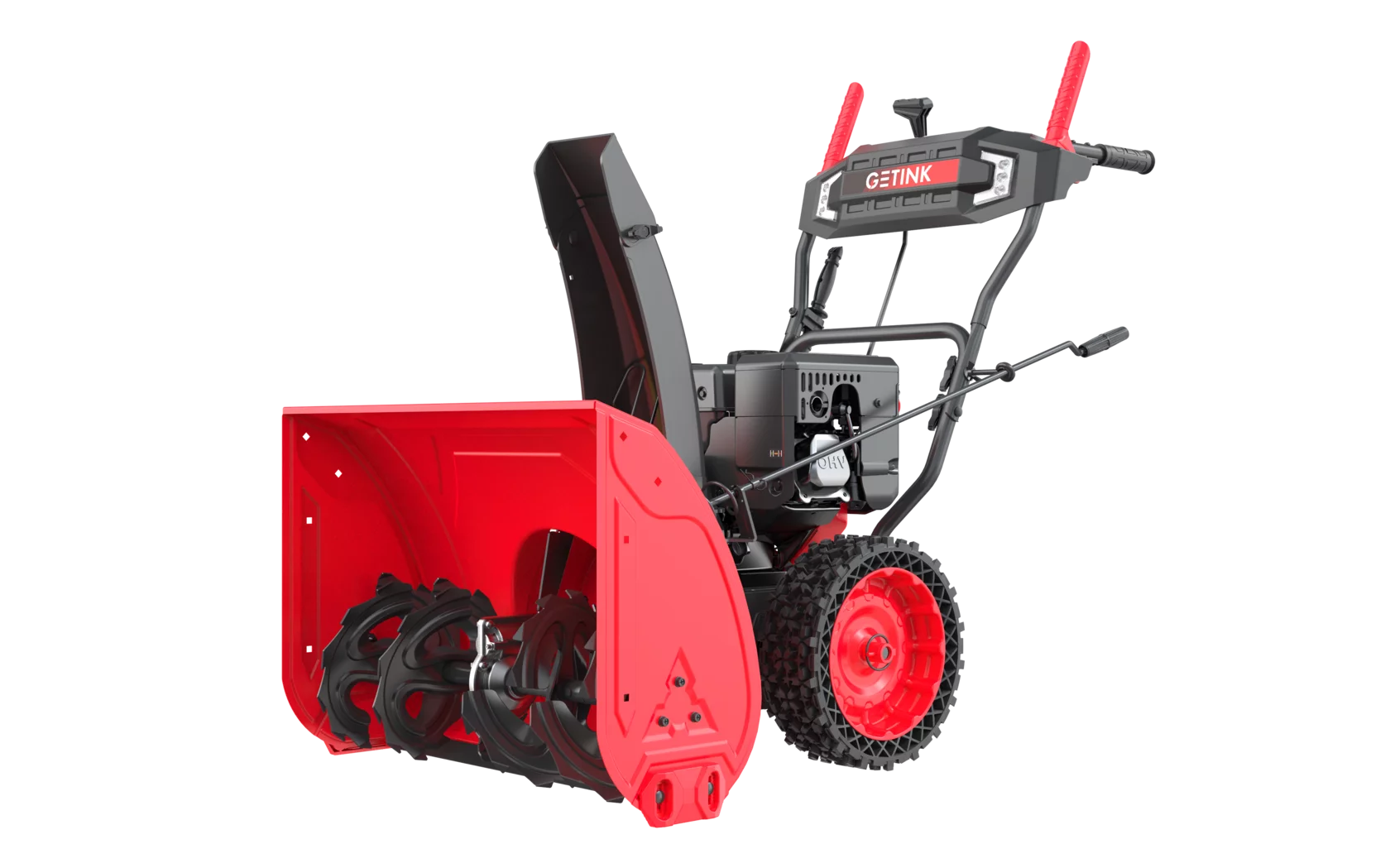 Самоходная бензиновая снегоуборочная машина GETINK GS668LE с шириной ковша 66 см и высотой 52 см это оборудование для расчистки от снега повышенной производительности.