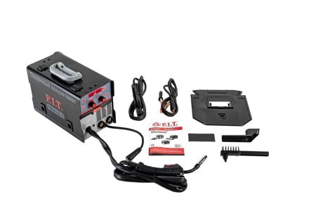Сварочный полуавтомат с горелкой, коробка, кабель с электрододержателем, кабель с клеммой заземления, щиток сварочный, щетка-молоток, инструкция по эксплуатации